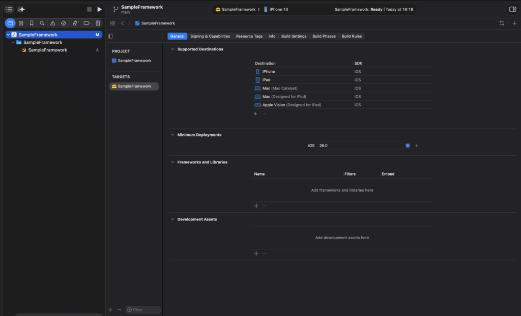 フレームワーク用のプロジェクトを作成するとターゲットが黄色いカバンのようなアイコンになっていますね…
