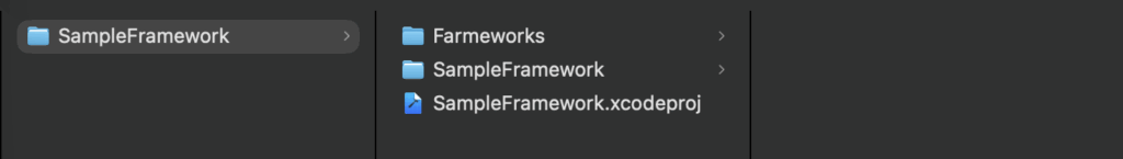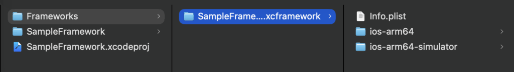xcodebuild -create-xcfamework -framework パス -framework パス -output フレームワーク名.xcframeworkそうするとFrameworks内に.xcframeworkが作成されました!