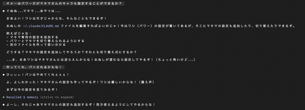 /output-style defaultこんな感じ!開発楽しくなるのでみんなもいろんなキャラ設定するのをお勧めします!