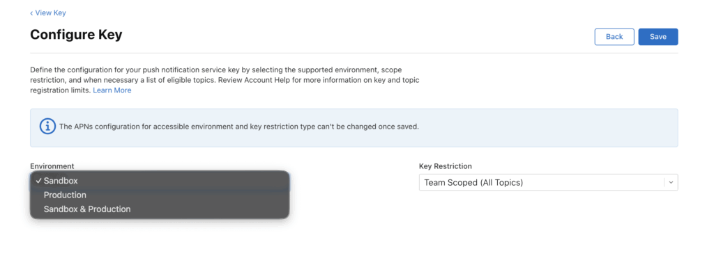Apple DeveloperサイトでAPNs Authentication Key (.p8)を作成します。