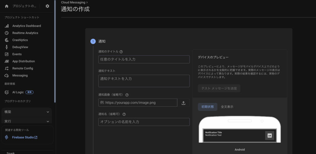 Messagingから新しい通知を作成すれば通知を飛ばすことが可能となります。繰り返しなどの設定ができるのもいいですね。