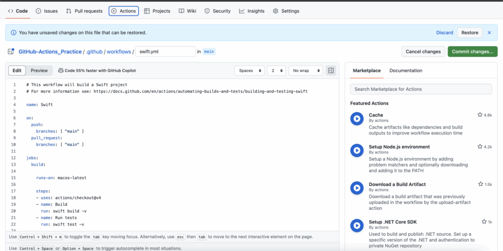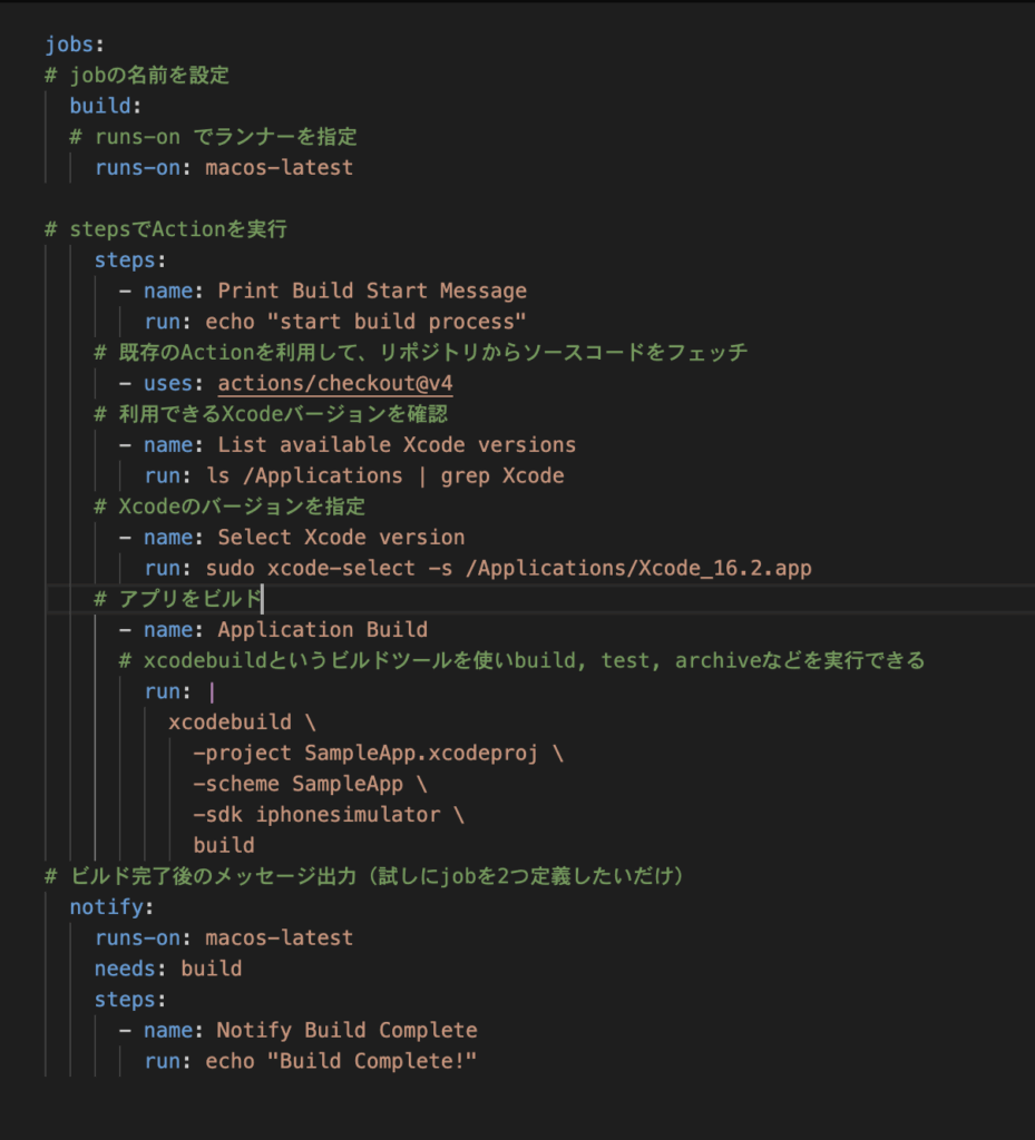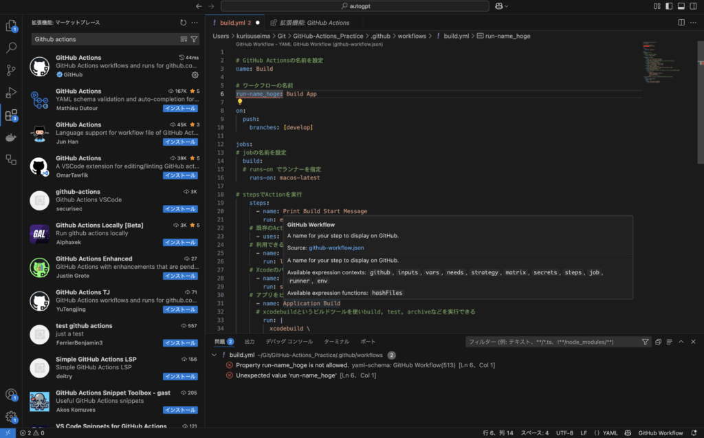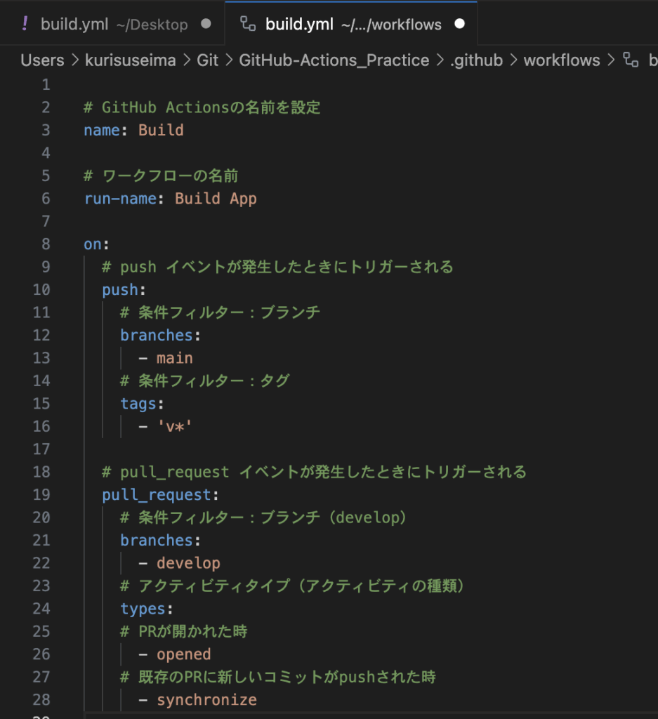 GitHub Actionsではymlファイルを利用してワークフローを作成する必要があります